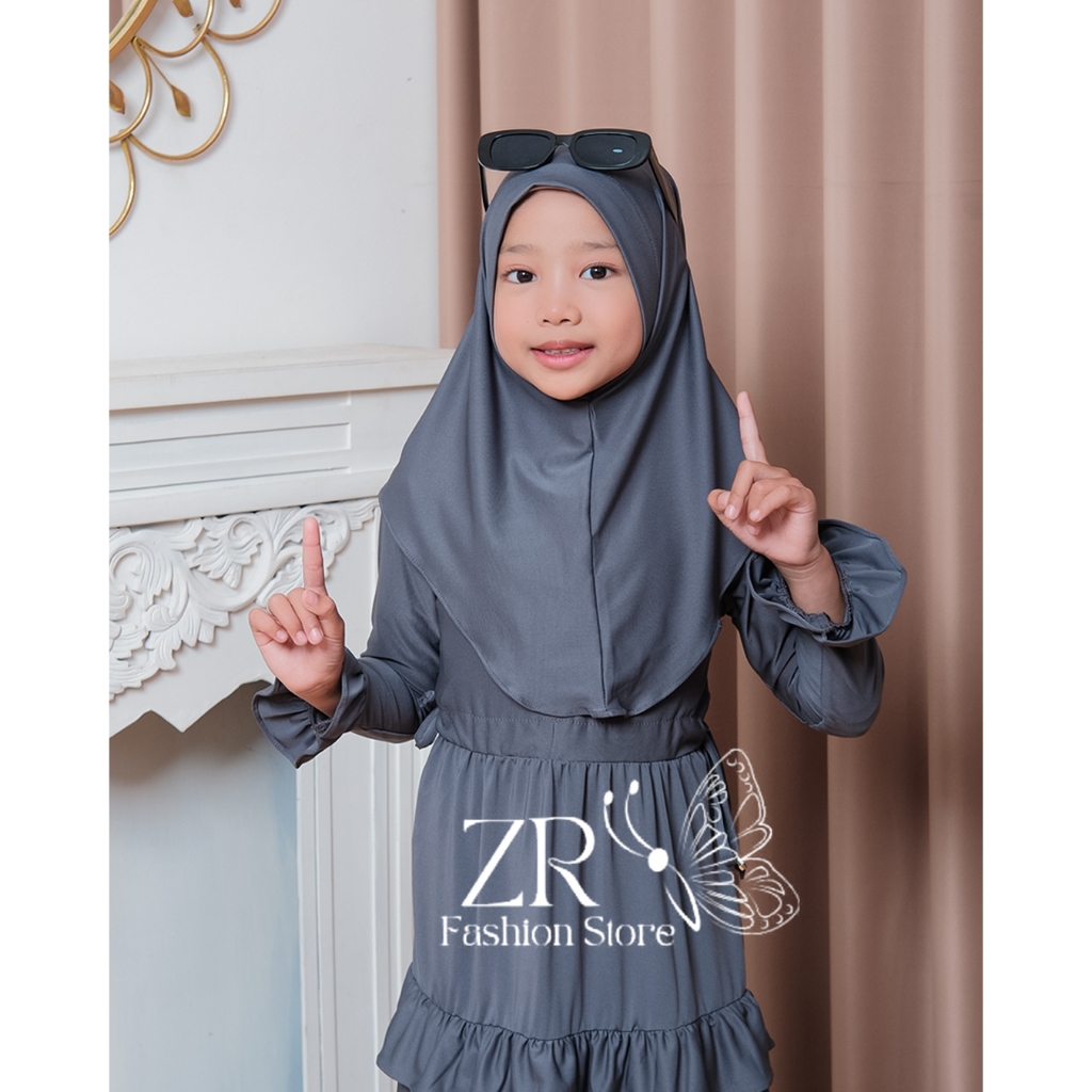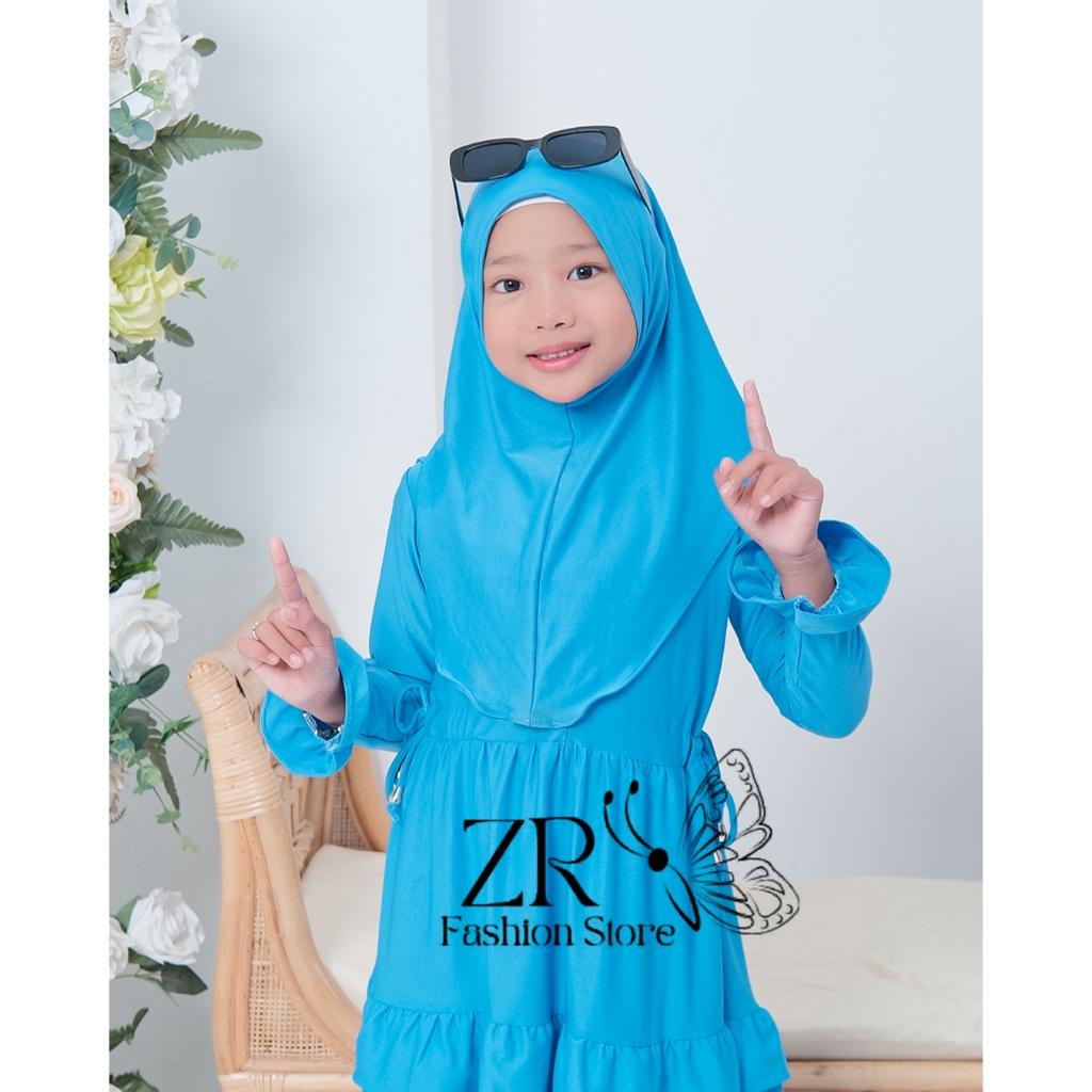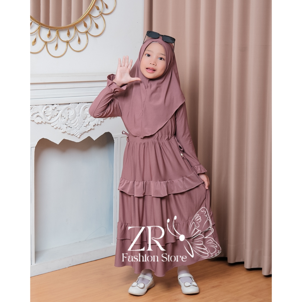 Gamis anak lebaran terbaru 2026 gamis Rahma - Bahan jersey premium dengan tali serut pinggang set hijab