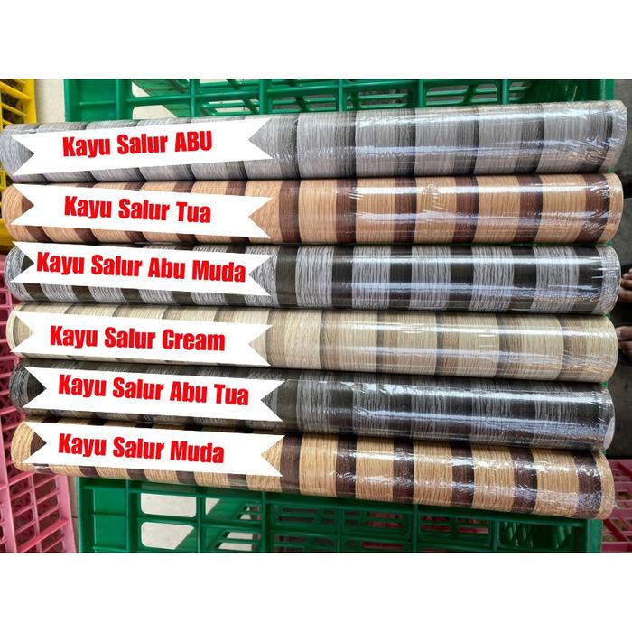 HOME WALLPAPER STICKER DINDING KAYU SALUR TUA - 45CM X 10 M - BUNGA UNGU