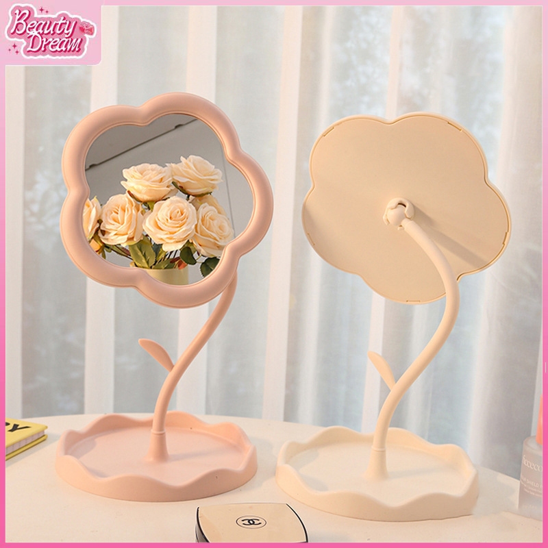 BEAUTY Cermin Bunga Standing Mirror Makeup Rotating Cermin Aesthetic Cermin Aesthetic Stand Mirorr Flower Kaca Meja Rias