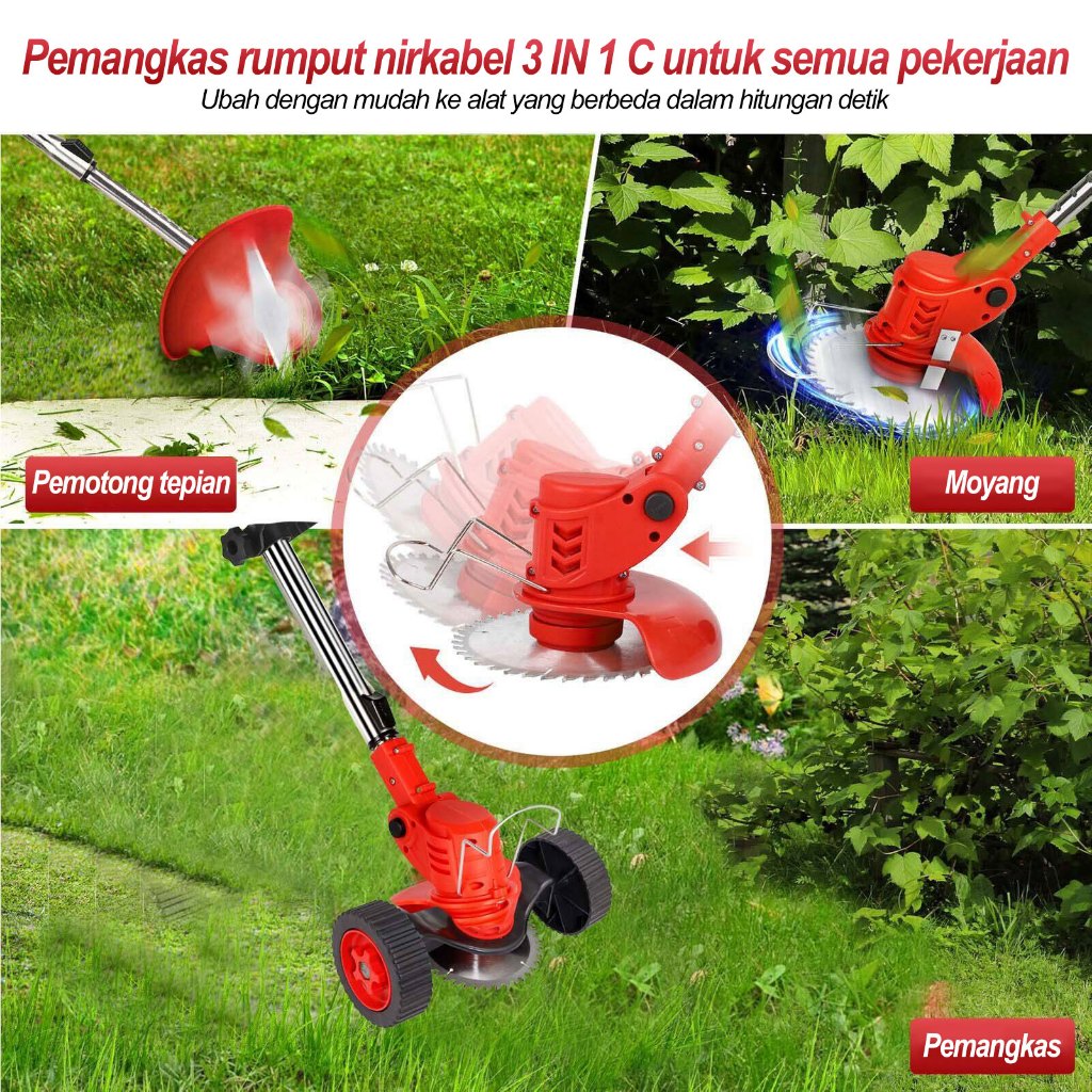 Mesin potong rumput 1090V/588V/288V Mesin potong rumput baterai roda Mesin pemotong rumput listrik pemotong rumput