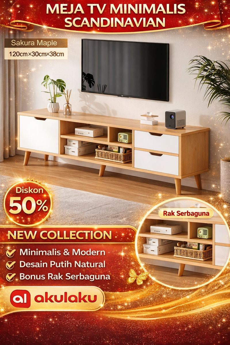 [Star] Meja TV Minimalis Scandinavian Kayu | Rak TV Modern Ruang Tamu | Lemari TV Multifungsi