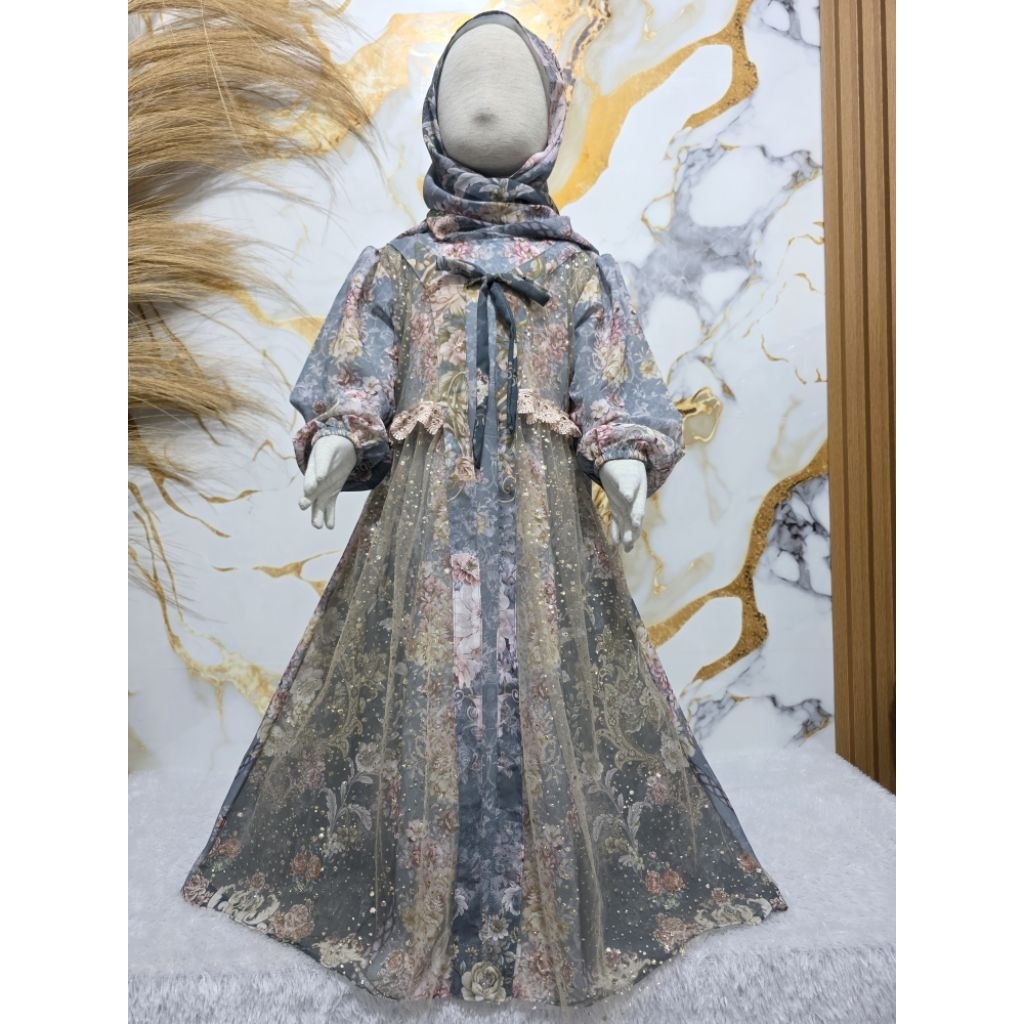 GAMIS CERUTY BABYDOLL MIX TILLE RAINDROP GLITTER ANAK PEREMPUAN USIA 3 TAHUN -12 TAHUN /GAMIS CARDIGAN CERUTY ANAK PEREM