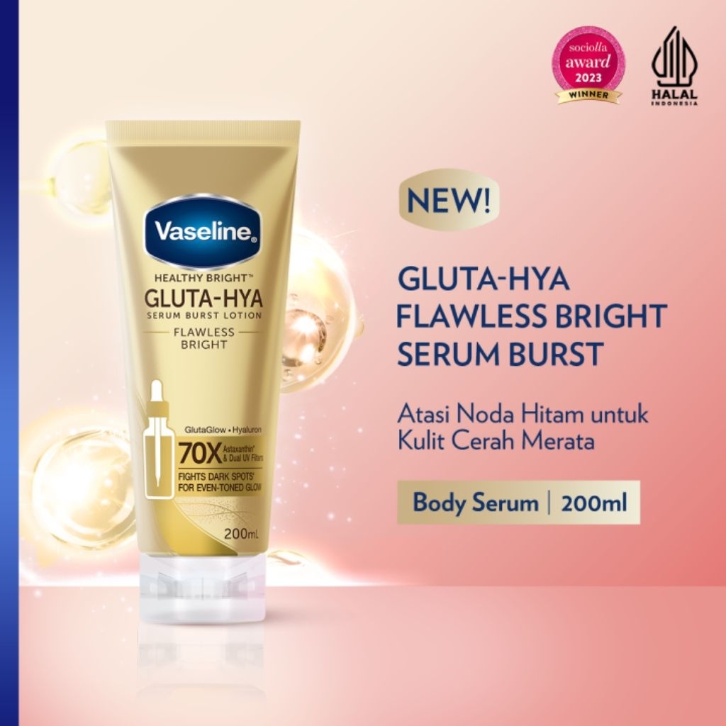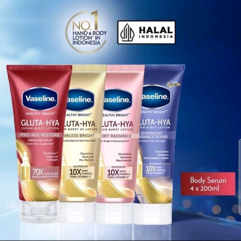 (INDOCUAN) Vaseline Gluta Hya 200ml / Vaseline Healty Bright Gluta Hya Serum Burst UV Lotion 200ml
