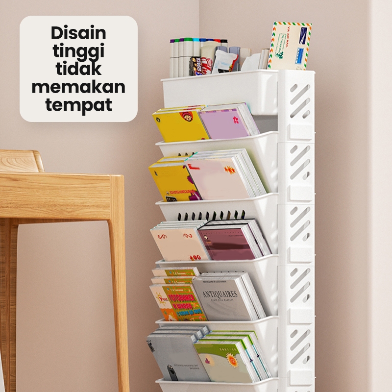 Rak Buku Storage Box Susun Tingkat Tempat Penyimpanan Serbaguna Rak Dapur Roda Rak Troli Minimalis HSB624