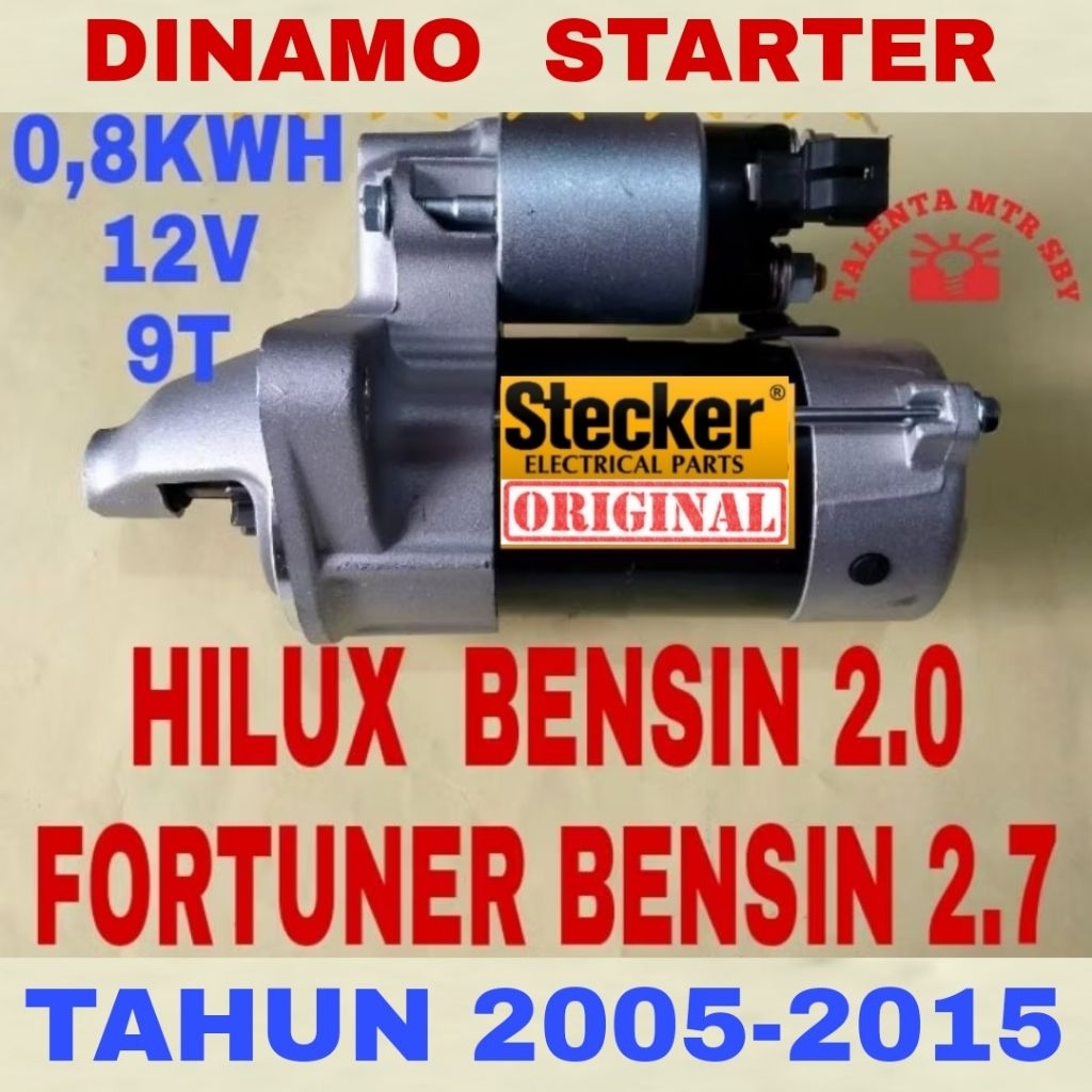 BERGARANSI. DINAMO STARTER TOYOTA HILUX 2.0 SC SINGLE CABIN / FORTUNER BENSIN 2.7 STATER ASSY