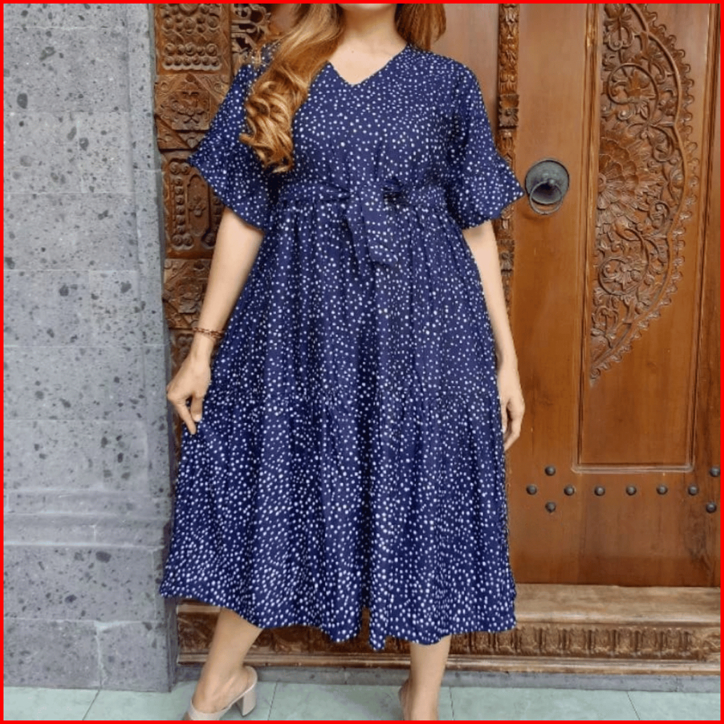 Daster Kekinian Terbaru Midi Dress Jenima Busui Jumbo Motif Polkadot Bahan Rayon Premium Tali Samping