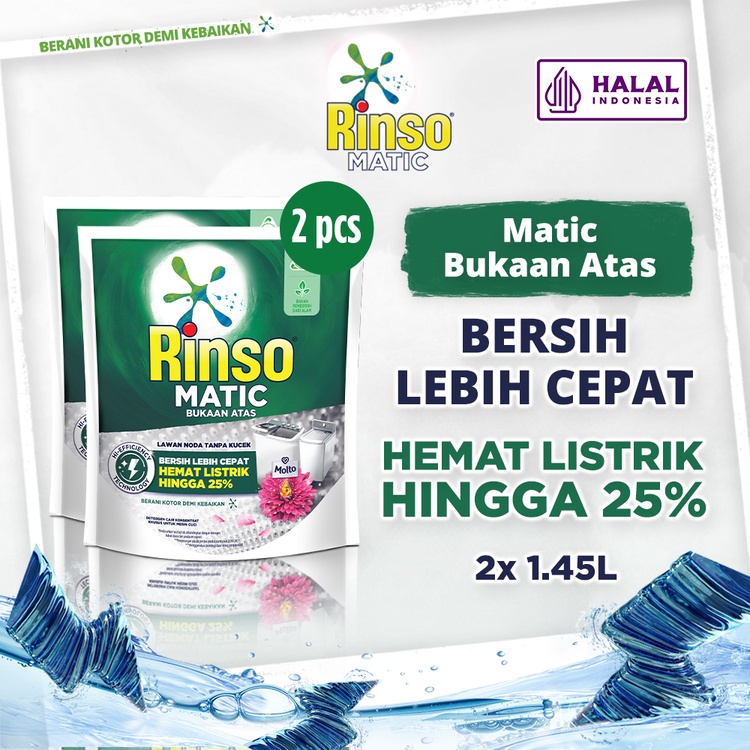 Rinso Detergent Cair Konsentrat Deterjen Matic Mesin Cuci Bukaan Atas 1.45 L X2