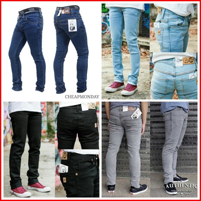 Celana Jeans Pria Cheap Monday 28-37 Hitam Abu Item Scrub Putih Navy Bio Blitz Blue Black Bio Wash