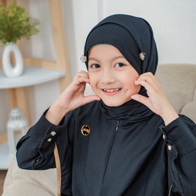 Abaya Anak Perempuan Lebaran 2026 Set Hijab Pashmina Gamis Anak Warna Hitam Usia Remaja Tangg 3-14 Tahun Bahan Polo Line