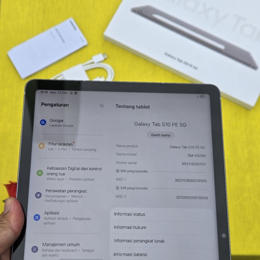 SAMSUNG TAB S10 FE 5G 8/128GB Wifi Cell SEIN RESMI INDONESIA SECOND PRELOVED TERAWAT