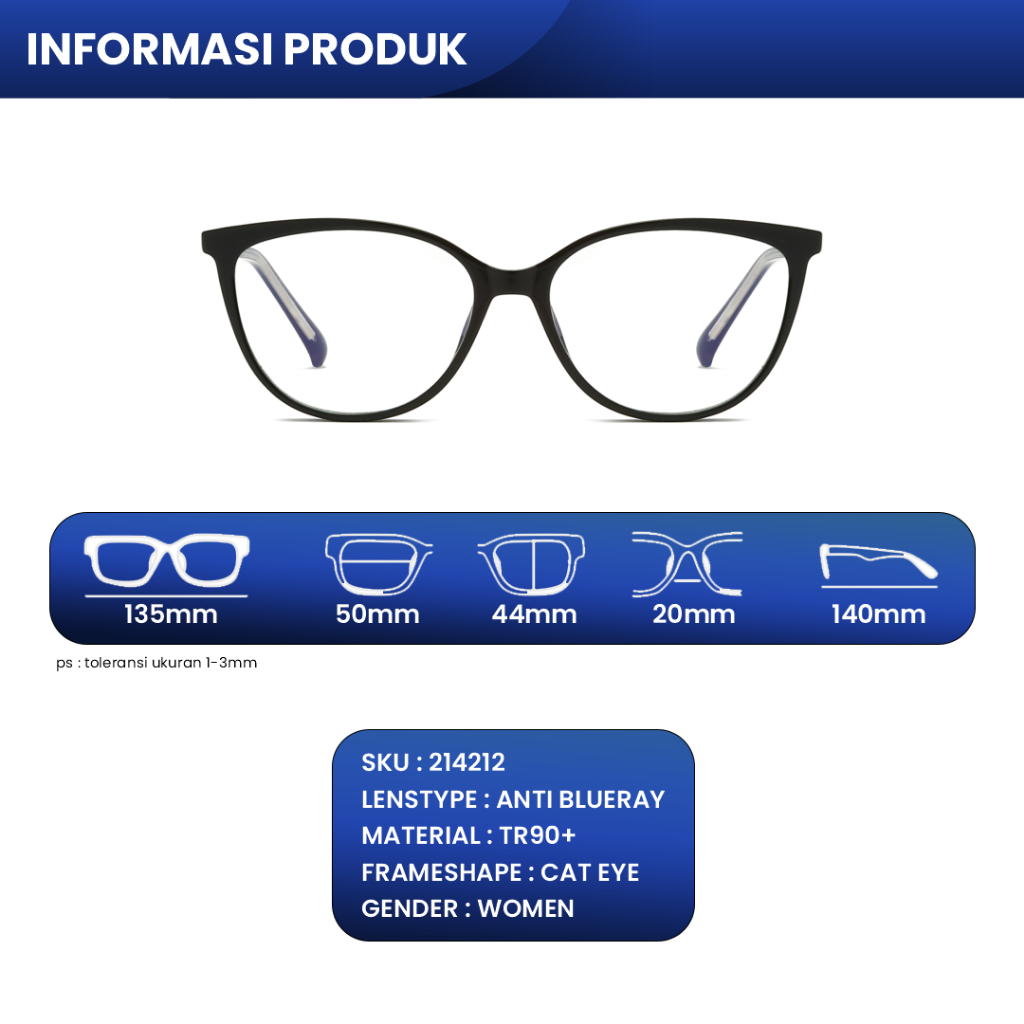 IOOI Eyewear - Kacamata Cat Eye TR 90+ Elastis Fashionable Anti Radiasi kacamata minus photocromic pria wanita original