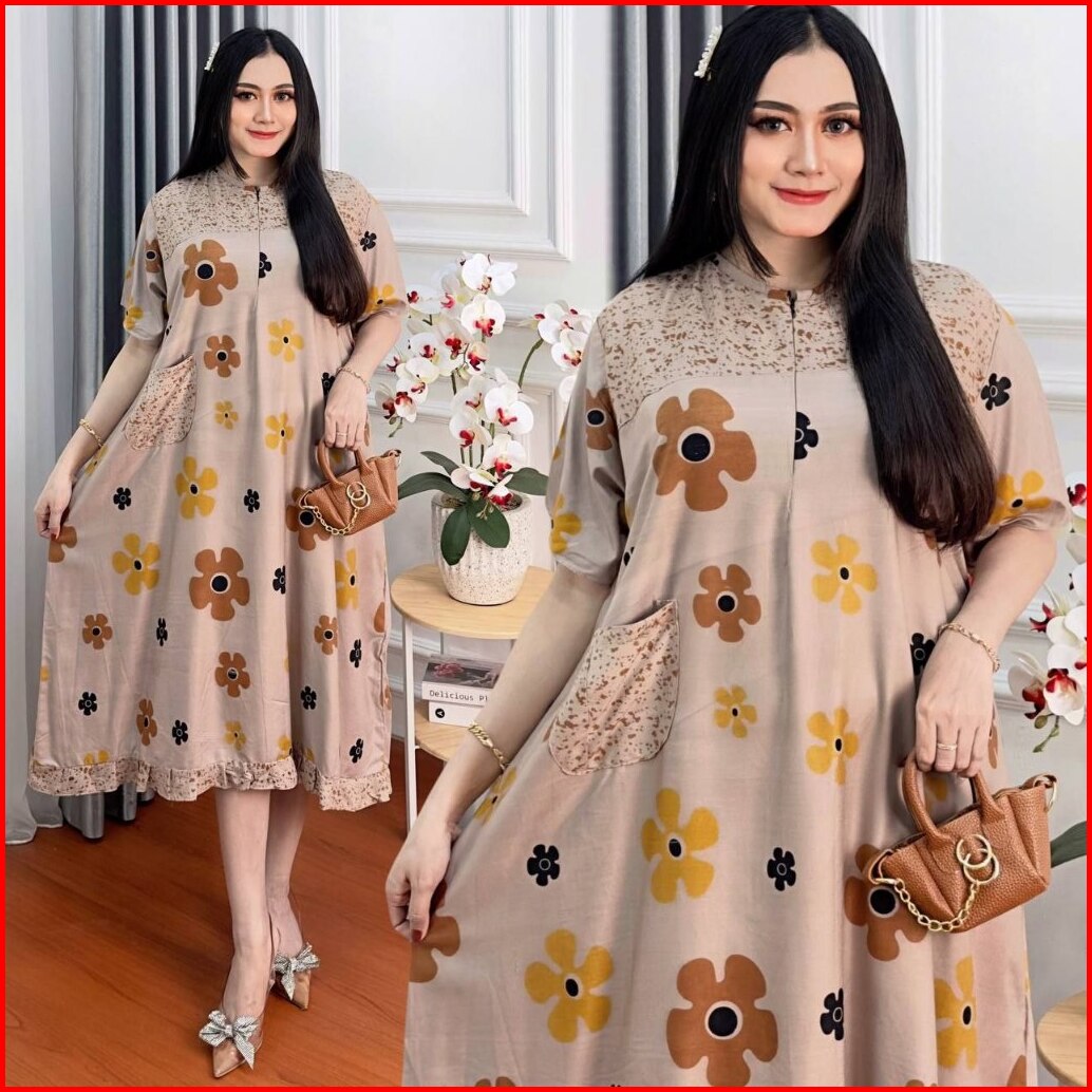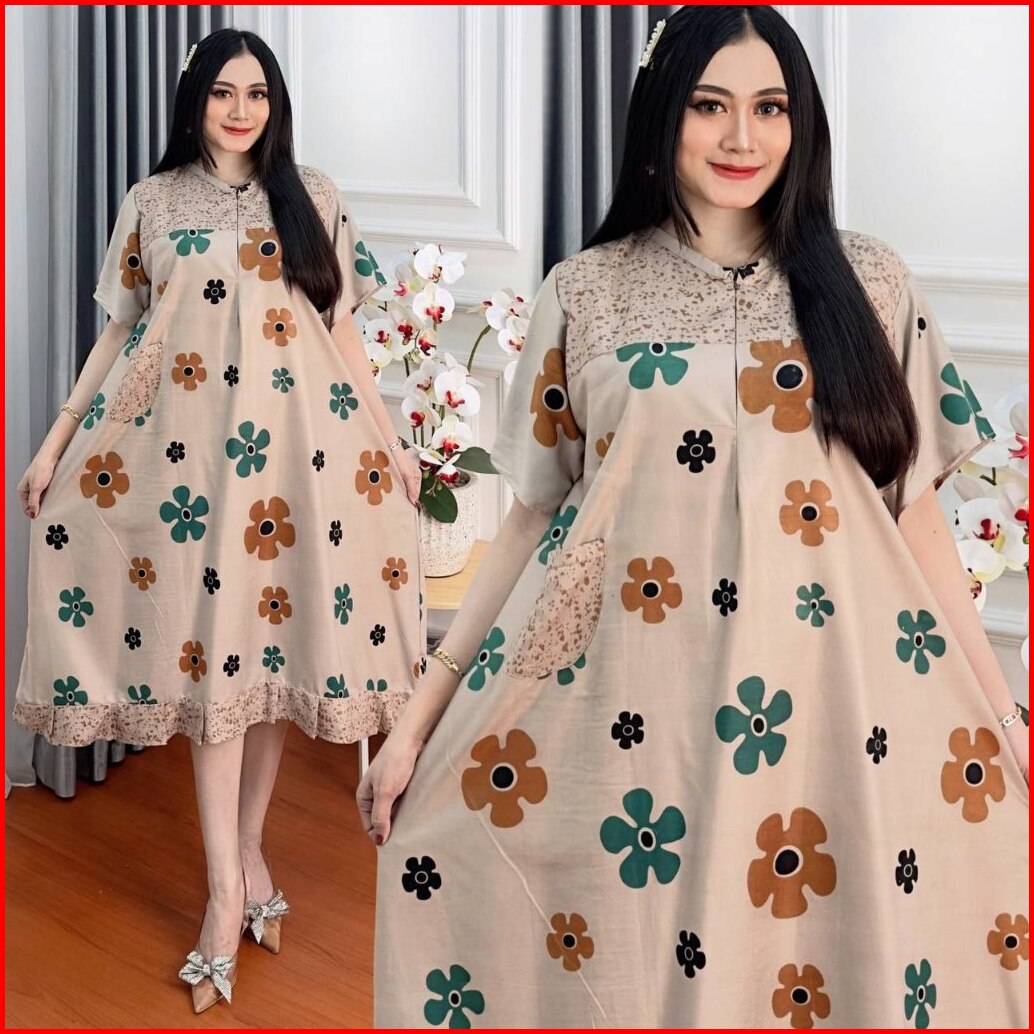 Daster Rayon Jumbo Busui Bumil Resleting Depan Lengan Pendek Batik Wanita Kekinian Batikbatara