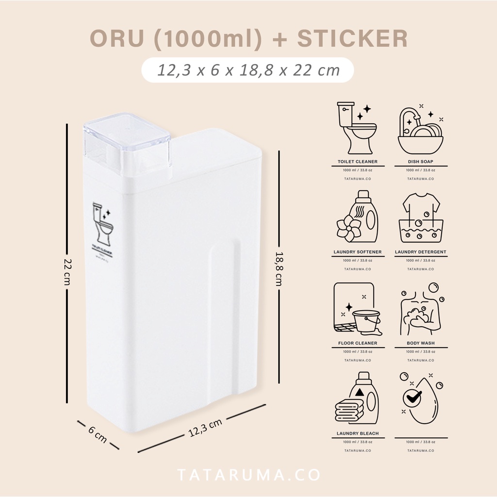 Tataruma Oru - Botol Refill Estetik Minimalis Tempat Detergent Softener Laundry Sabun Cuci Piring Toilet Cleaner Cairan