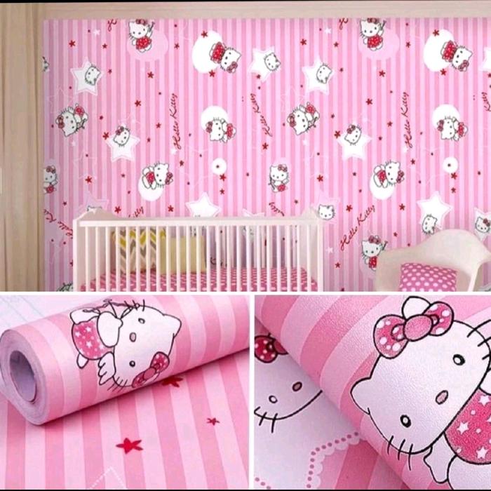 PROMO PAKET HEMAT ISI 4 ROLL WALLPAPER STICKER DINDING MOTIF KARAKTER DORAEMON POLKADOT HELLO KITTY MICKEY MOUSE COCOK DI KAMAR ANAK BAHAN KERTAS PVC - DORAEMON KEPALA