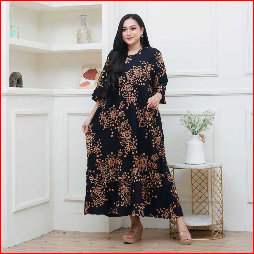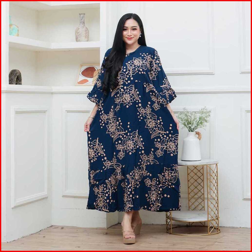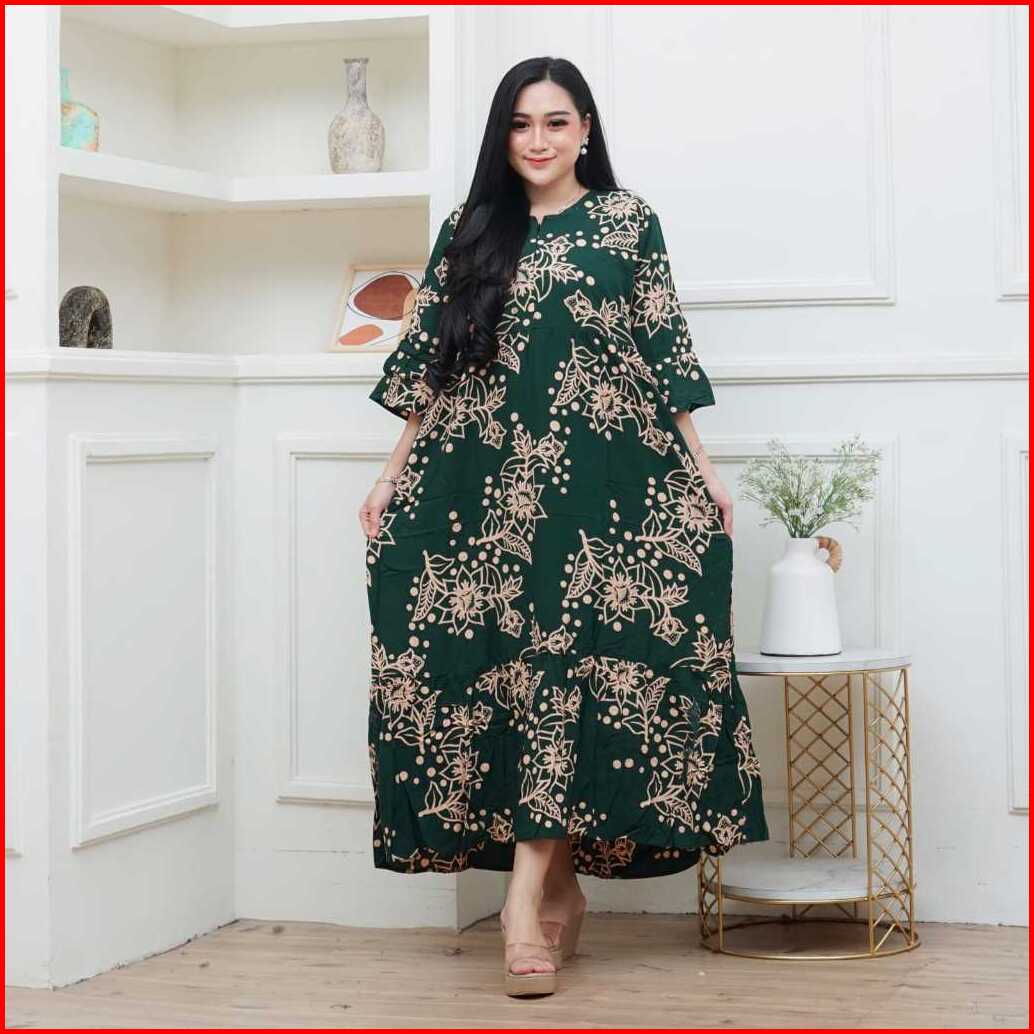 Daster Kekinian Motif Tangan 3 4 Midi Dress Wanita Rayon Bumil Busui Friendly Jumbo