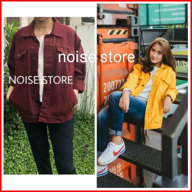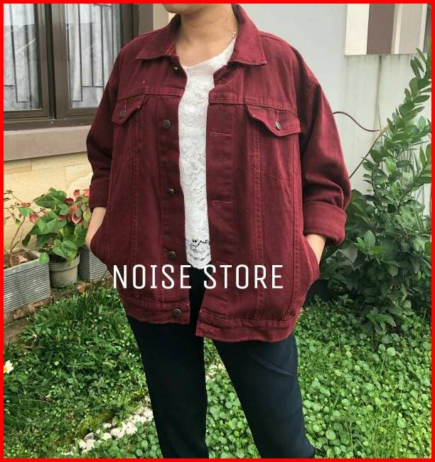 Jaket Jeans Maroon Lemon Oversize Premium Quality
