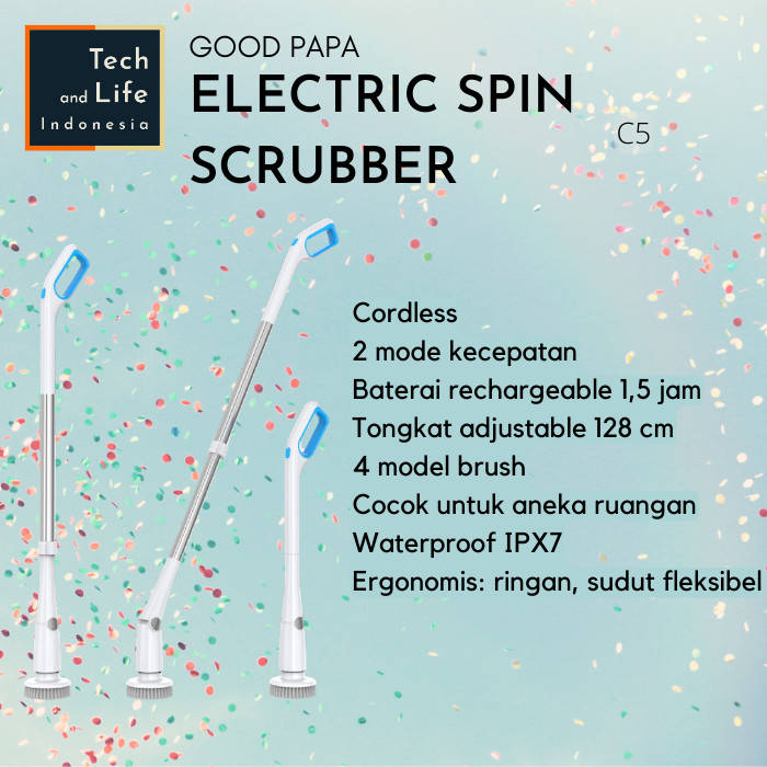 Sikat Pembersih WC Toilet Elektrik Good Papa Cordless Portable Spin Scrubber Cleaning Brush Multifungsi C5