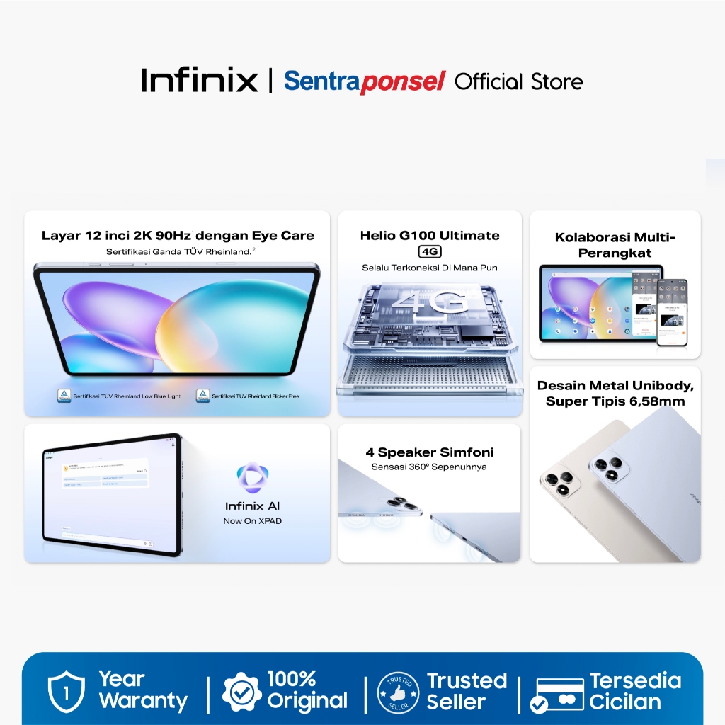 Infinix XPAD 20 Pro 8GB/256GB - Mediatek G100 Ultimate - 12" 2K 90Hz - 8000 mAh - 4G LTE - Garansi Resmi