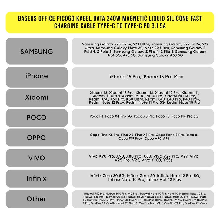 Promo Baseus PI-COGo Kabel Data 240W Magnetic liqu-idSilicone Fast Charging C to C PD 3.1 5A