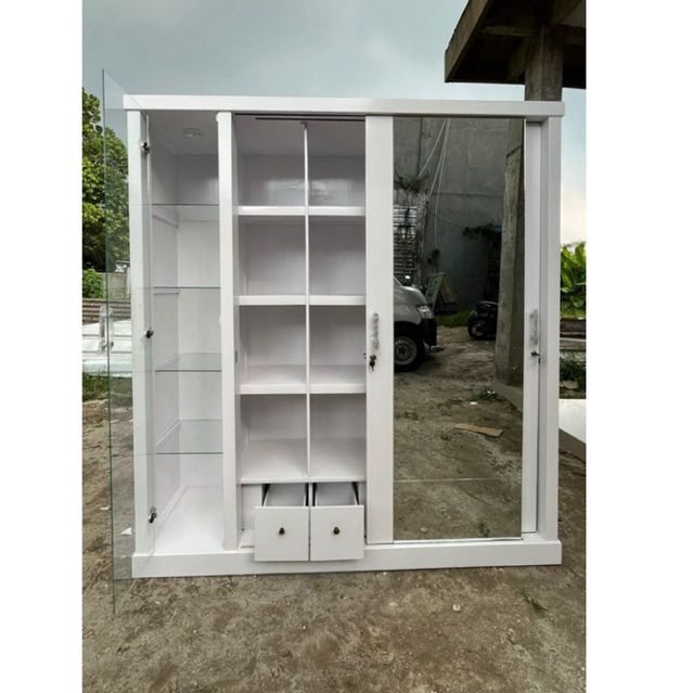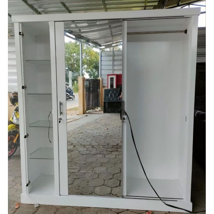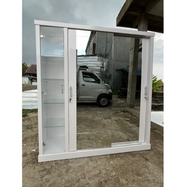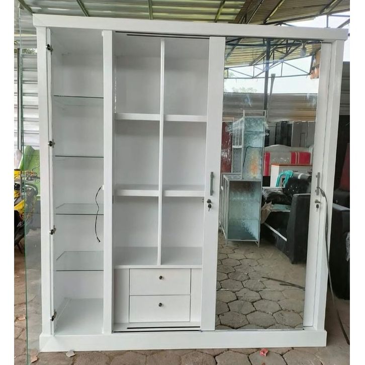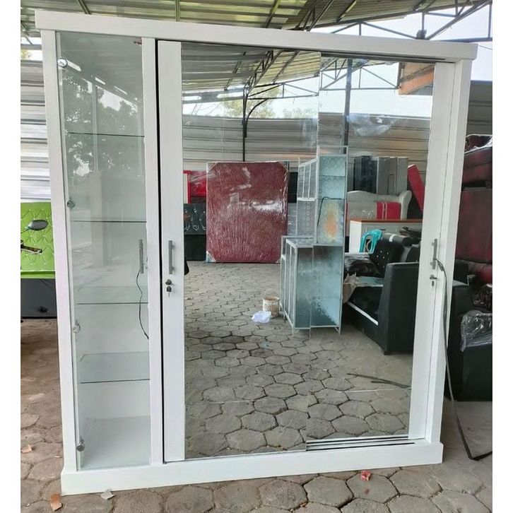 Lemari Pakaian Sliding Full kaca+Hias Tas/Uk 180x50x2m
