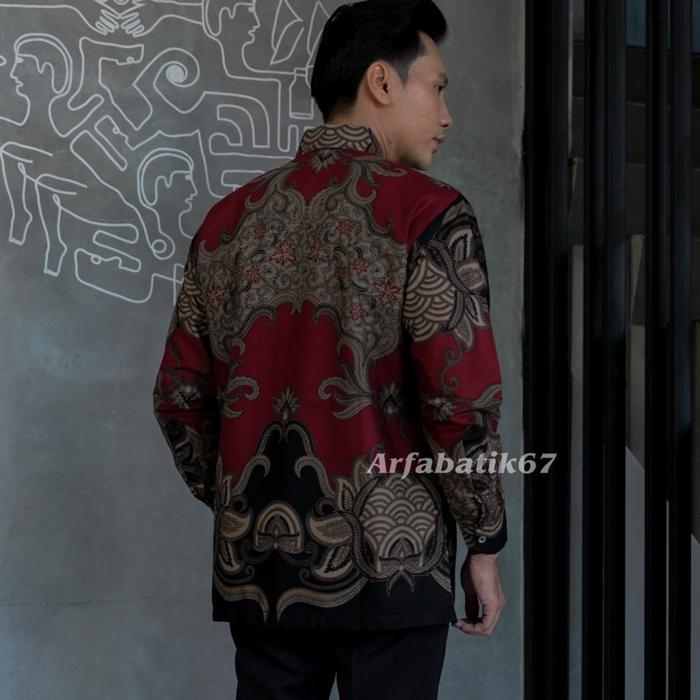 GAJAH MADA MAROON kemeja batik pria tangan panjang katun solo lapis furing by arfabatik67 Nyaman - Lengan panjang S