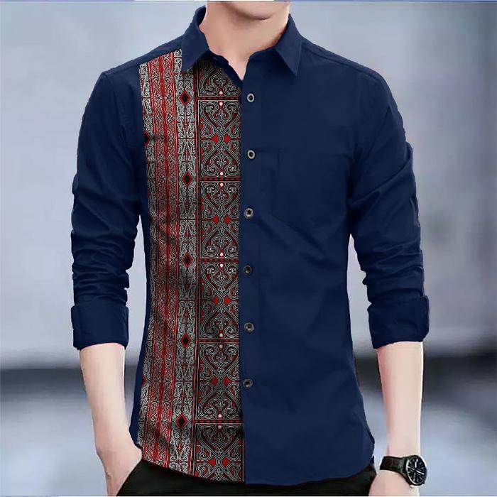 Angelaco | Batik Batak Pria Lengan Panjang | Motif Gorga BG10P - Maroon M