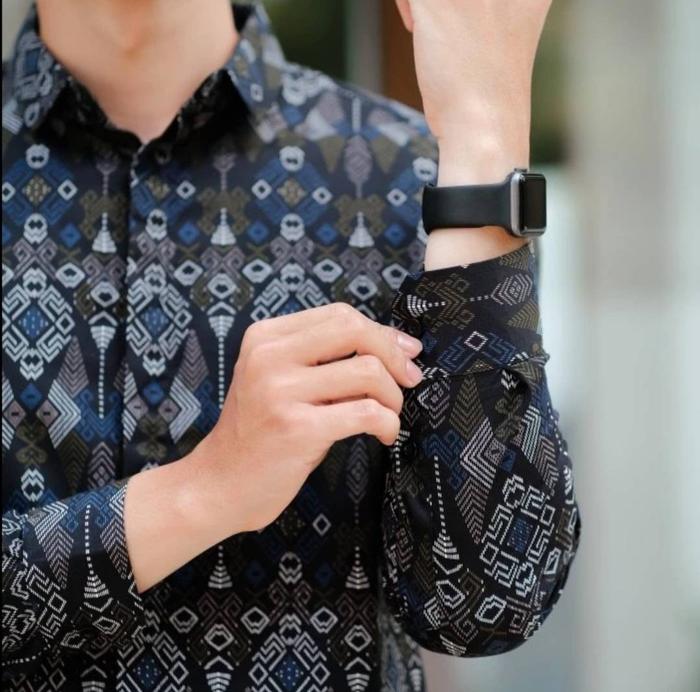 KEMEJA BATIK PRIA LENGAN PANJANG SONGKET PREMIUM Motif Stretch Katun Hitam - Arkhana Black SIZE XL