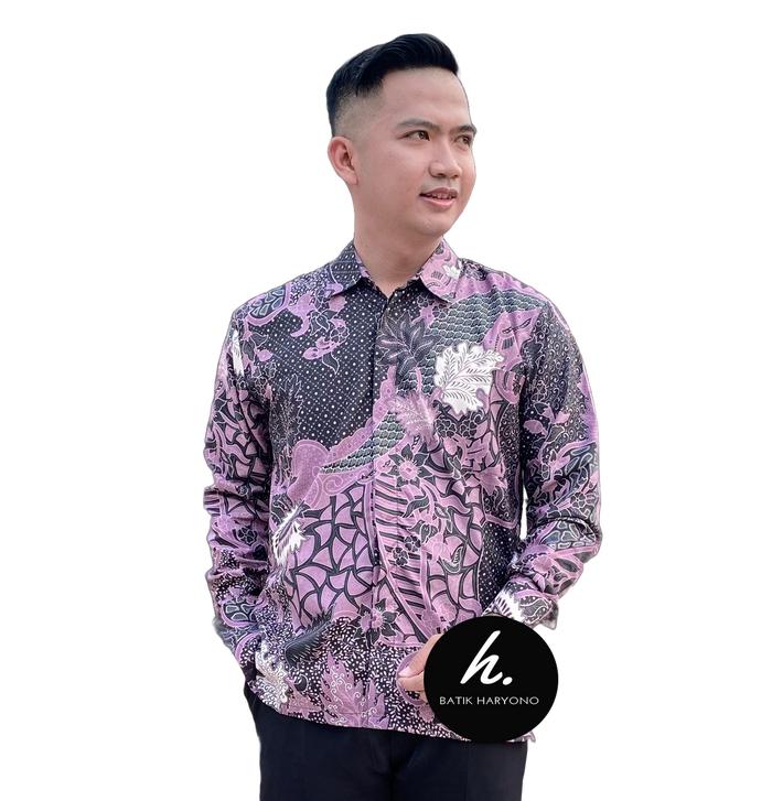Baju Batik Pria Murah Kemeja Lengan Panjang Dewasa Seragam Kondangan Kerja Terbaru Modern Mewah kantor - Navy Blue M