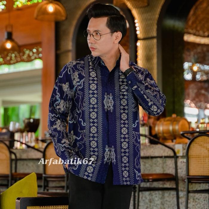 ORCA Biru kemeja batik pria lengan panjang dan pendek katun prima premium lapis furing by arfabatik67 - Lengan panjang S