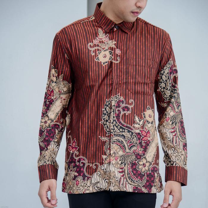 Coop Design - Erlangga Kemeja Motif Batik Printing Katun Lengan Panjang Slimfit Pria - Coklat L