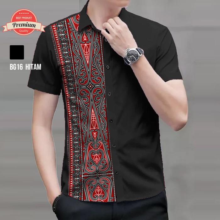 Angelaco | Kemeja Batik Batak | Batik Etnik Lengan Pendek Pria Motif Gorga BG16 - Maroon M