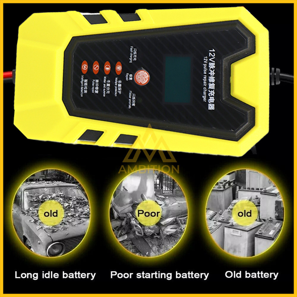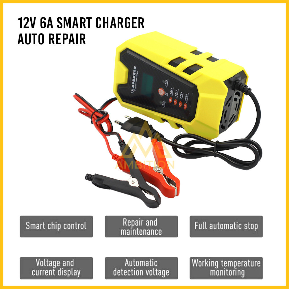 12V 6A Cas Aki Mobil Motor Pulse Repair aki Otomatis Power Digital LCD Display