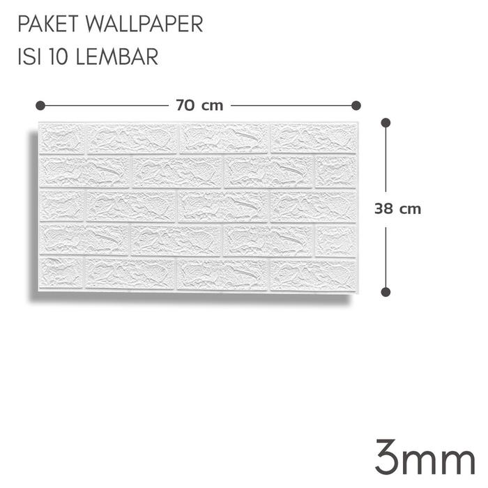 (YS04)PAKET 10 PCS WALLPAPER DINDING 3D FOAM MOTIF BATU BATA 70 X 38 CM 3MM DEKORASI DINDING KAMAR MURAH KERTAS STIKER - 10PCS 70X38 PUTIH