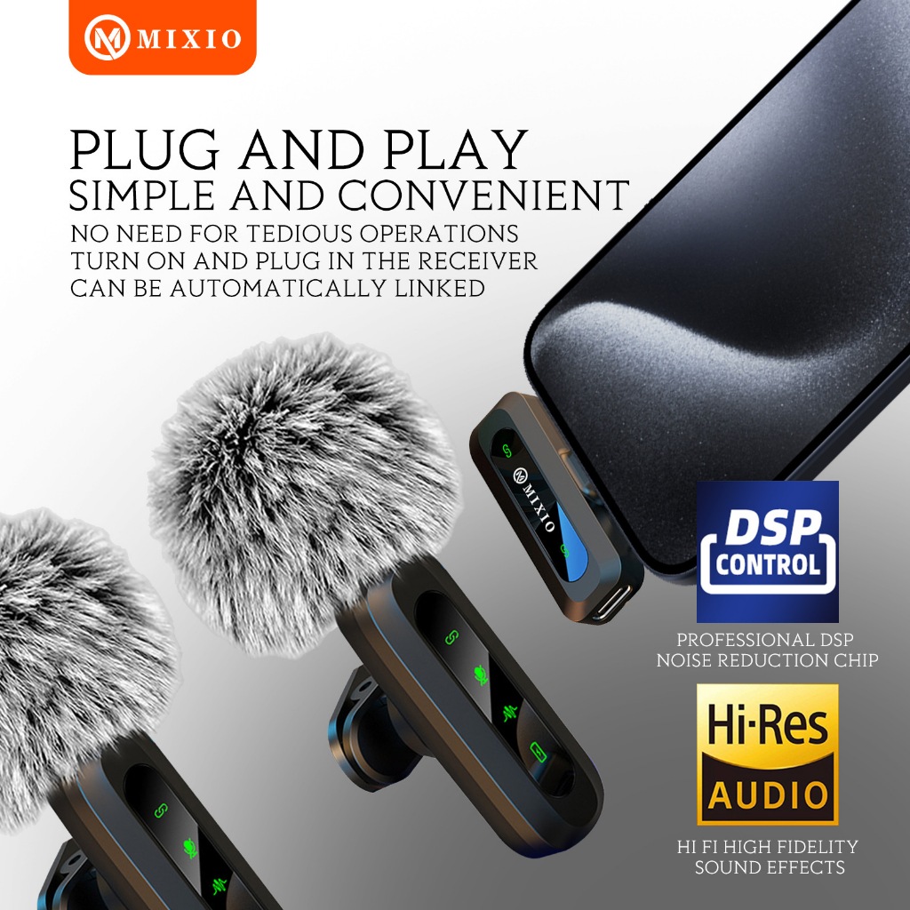 MIXIO W25 W26 Wireless Microphone Mic Wireless Clip on Microphone Mikrofon Lavalier HP Plug & Play