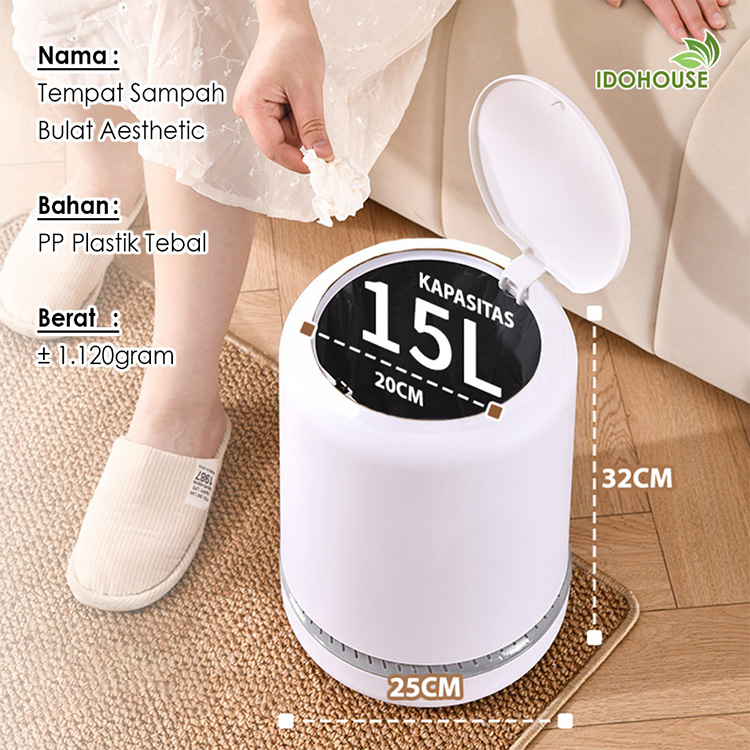 IDO| Tempat Sampah Tutup Pop-Up Sekali Tekan Anti Bau Aesthetic Tong Besar Plastik Kantor Dapur F01B
