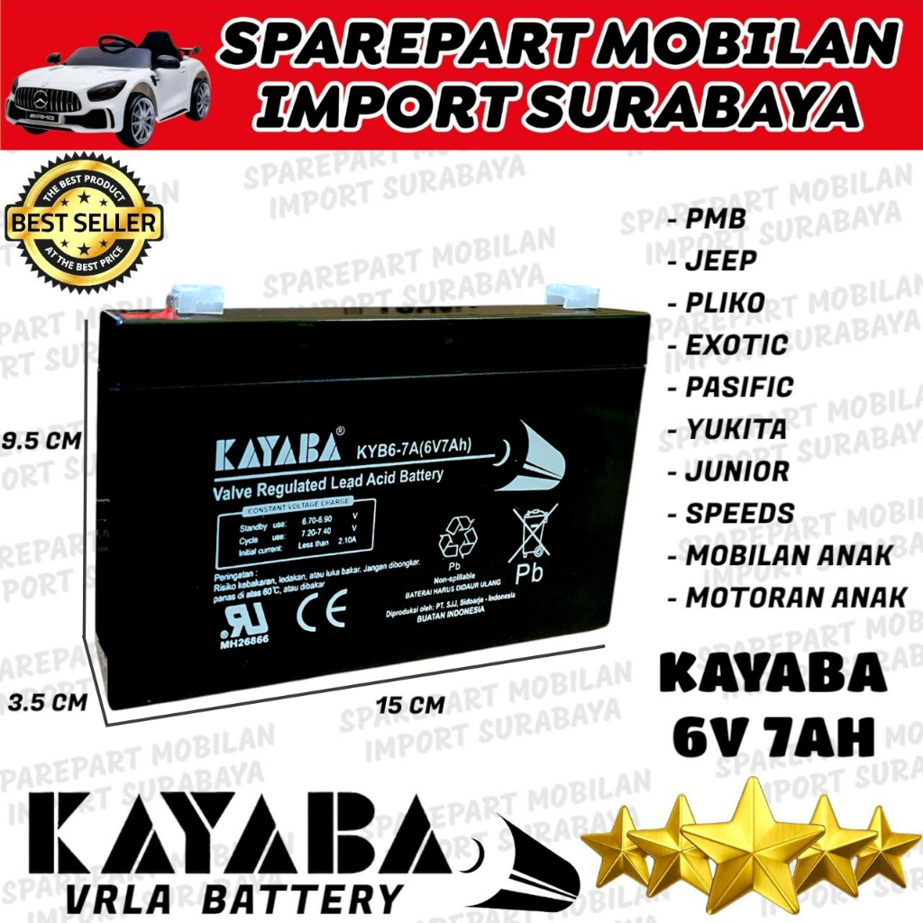 PUSAT BATERAI KAYABA 6 VOLT 7 AMPER MOTOR AKI MOBIL MOBILAN ANAK BATTERY PMB PLIKO 6V 7AH RC MAINAN KAYABA