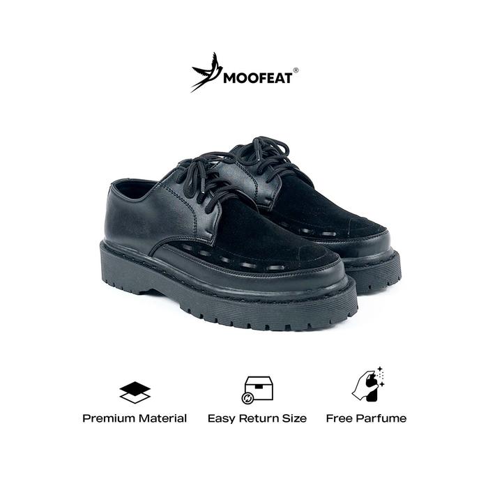 Moofeat Luna - Sepatu Kulit Pria Wanita Derby Casual Boots Hitam Original - 39