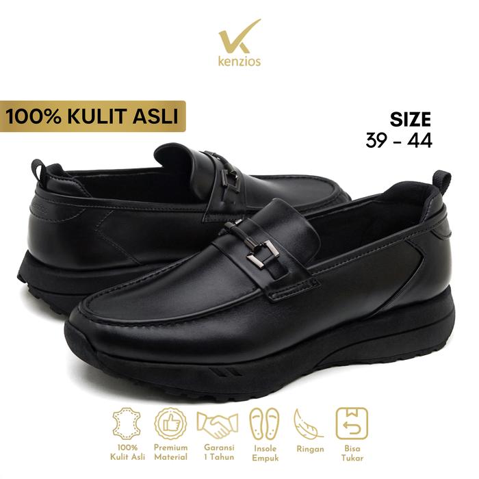 KENZIOS LUXE Full Black - Sepatu Formal Pria Kulit Asli - Sepatu Kondangan Loafer Slip On - Size 39-44 - 41