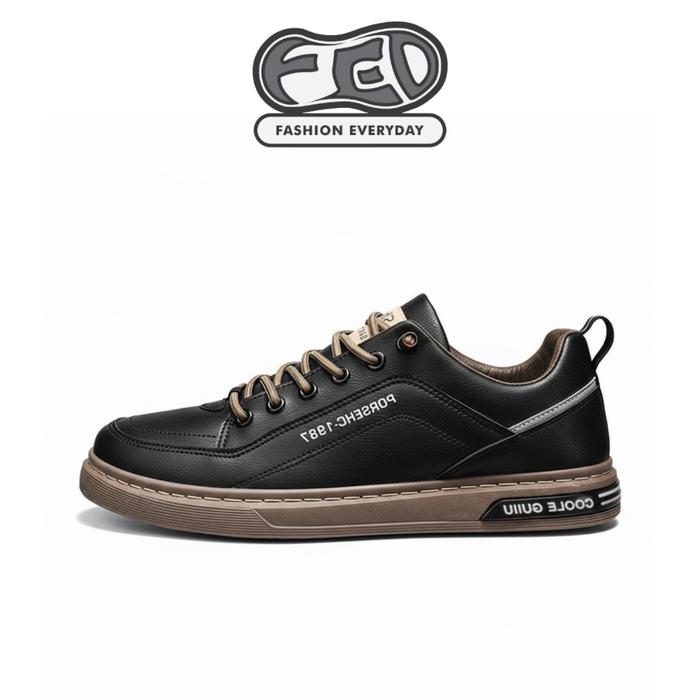 FED Sepatu Running Sneaker Casual SANO BLACK Cowok Keren Shoes Sneakers Kasual Hitam Impor Pria Sport Kerja - BLACK 39