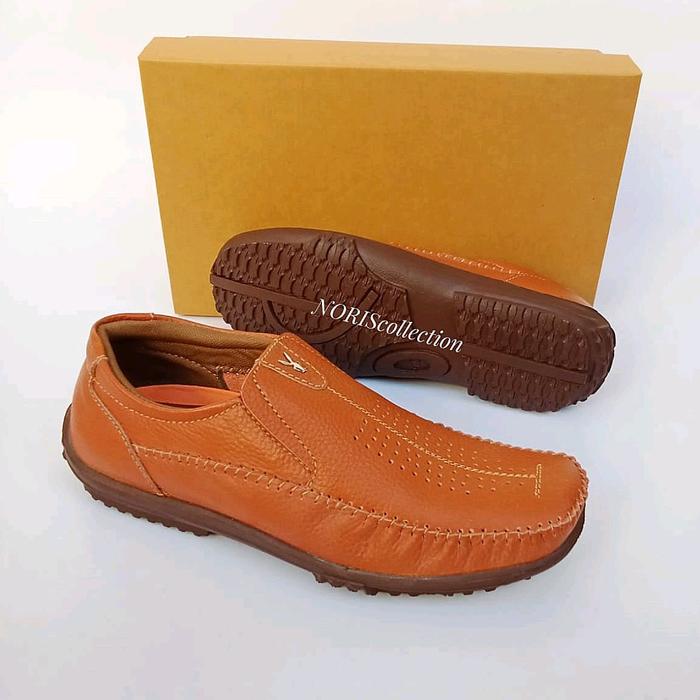 Sepatu Santai Pria Kulit Asli Sepatu Casual Pria Kulit asli Coklat Hitam Flat Shoes - Tan 38