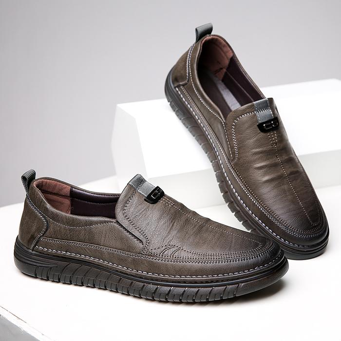 Leedoo Sepatu Slip On Pria Kulit Sepatu Pantofel Formal Sepatu Casual Sepatu Kerja Antiselip Hitam MC483 - Coklat 39