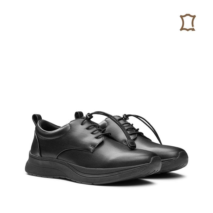 Prabu - Sepatu Kulit Sneakers Pria Rizki Black Hitam - 39