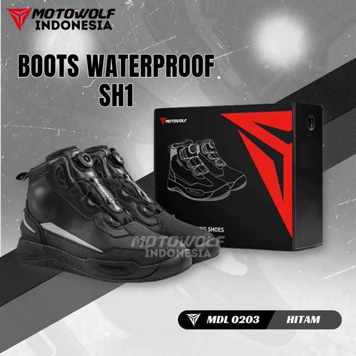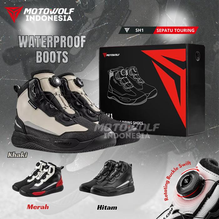 Sepatu Motor Touring Adventure Bahan Kulit Waterproof Boots High Quality Motowolf SH1 - Hitam 40