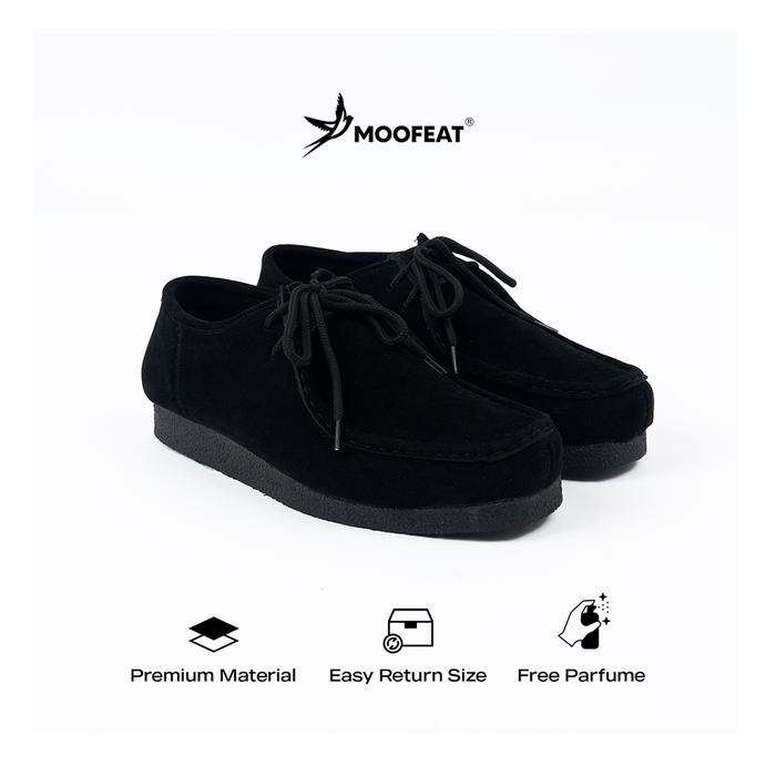 Moofeat Carter - Sepatu Kulit Wallabees Suede Pria Wanita Casual Black - 39