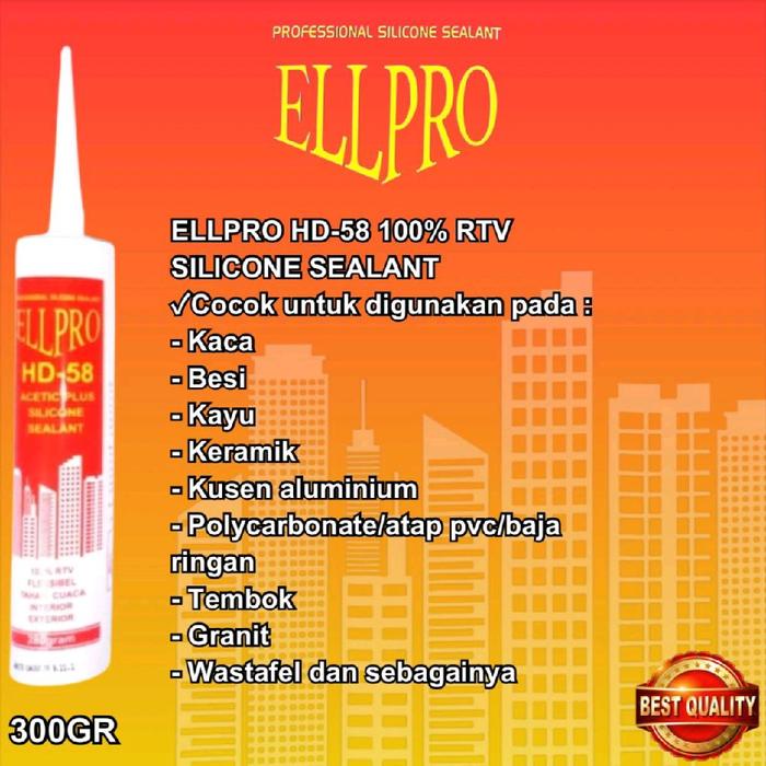 Paket Gun+Lem Silikon Kaca/Aquarium/Wallpanel ELLPRO HD 58 SILICONE HIGH DENSITY SEALANT - CLEAR/BENING