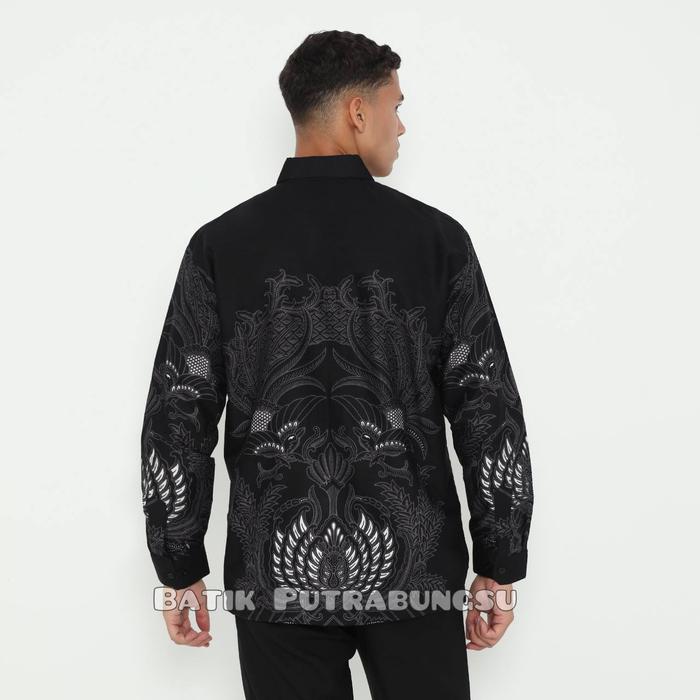 GURDO HITAM kemeja batik pria katun premium lapis furing lengan panjang pendek - GURDO PANJANG S
