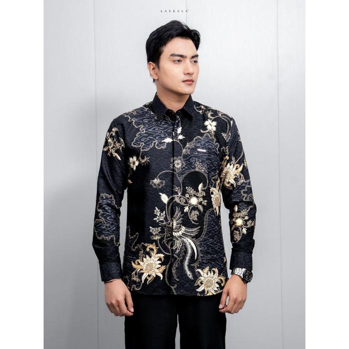 Laskala Batik Premium Dhatu Black Kemeja Batik Pria Slimfit Lengan Panjang - M