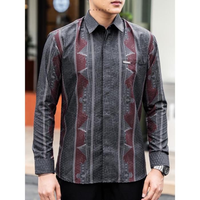 Laskala Batik Premium Bandung Kemeja Batik Pria Slimfit Lengan Panjang - XL