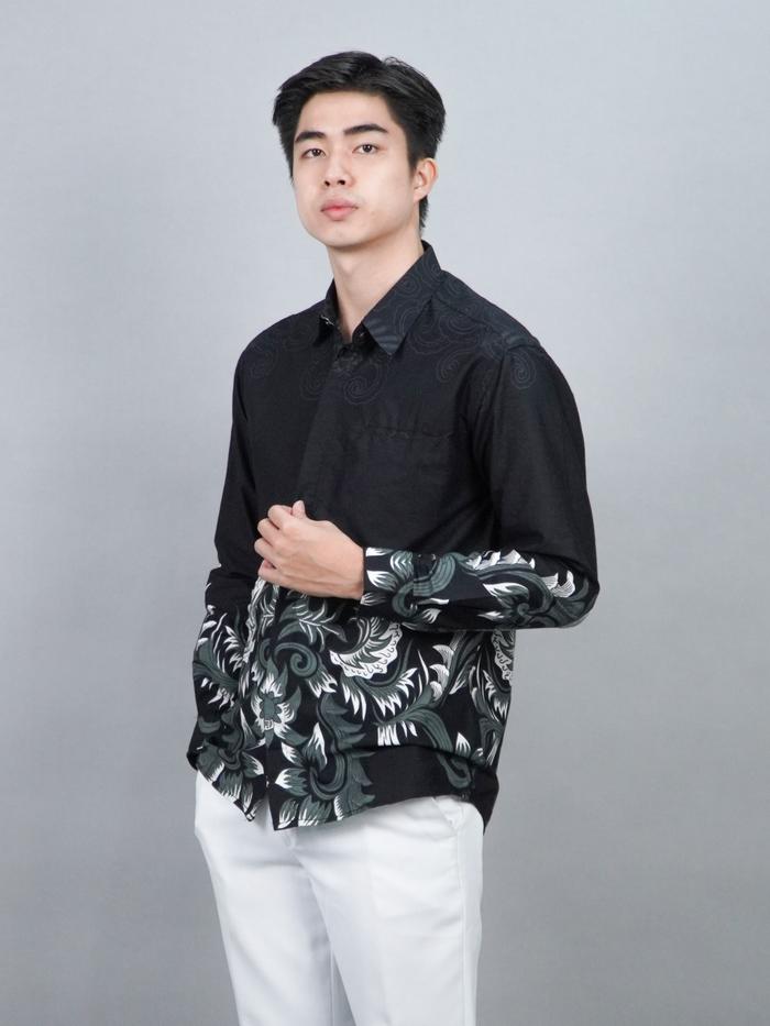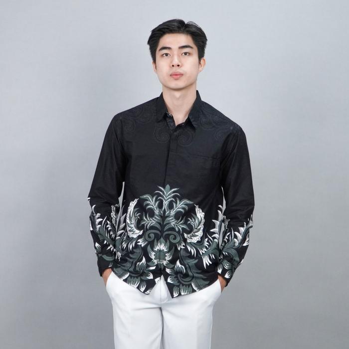 Swipe Up Kemeja Batik Pria Katun Slimfit Modern Lengan Panjang Motif Katsura Black - Katsura Black M