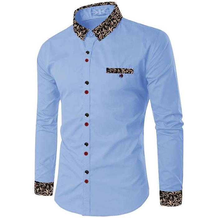 ERICO-Kemeja Riko Hem Fashion Kombinasi Batik Pria Kasual Lengan Panjang - Hitam All Size M-L